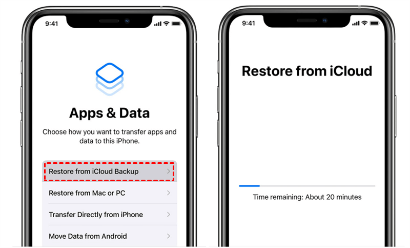 Step 3: Follow the prompts to set up your iPhone until you access the Apps & Data screen > Choose Restore from iCloud Backup.