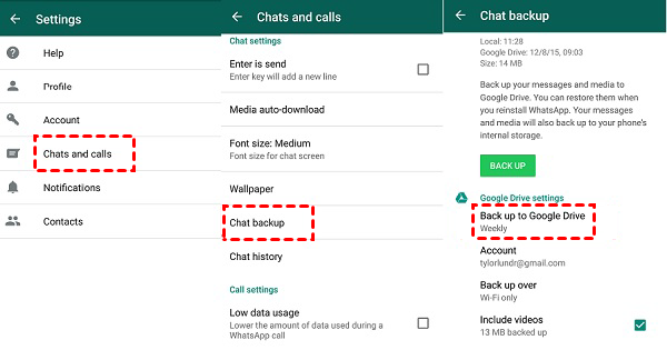 Step 2: Choose Chats and calls > Chat backup > Backup to Google Drive.