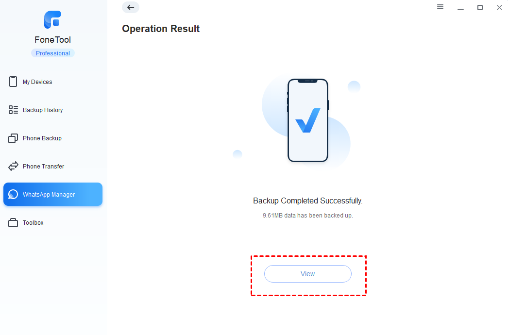 Step 1: Once the backup is completed, click the View button to check the backup files directly. (You can also go to Backup History to browse backup data.)