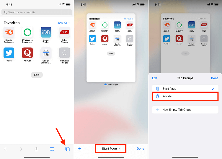 Step 1. Launch the Safari app on your iPhone/iPad > Tap on the tab icon in the bottom right corner > Select Private to open a private browsing session.