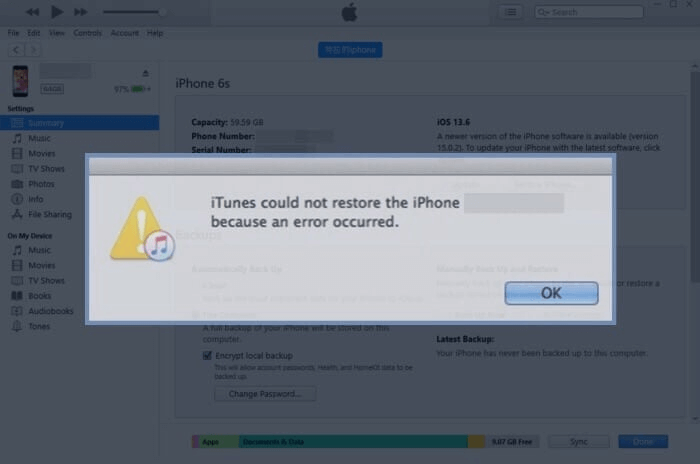 From time to time, some users complain about the “unable to restore iPhone from iTunes backup” error always occurs when you restore iPhone using iTunes. Here are some common reasons that cause restoring iPhone from iTunes backup on your PC to fail.