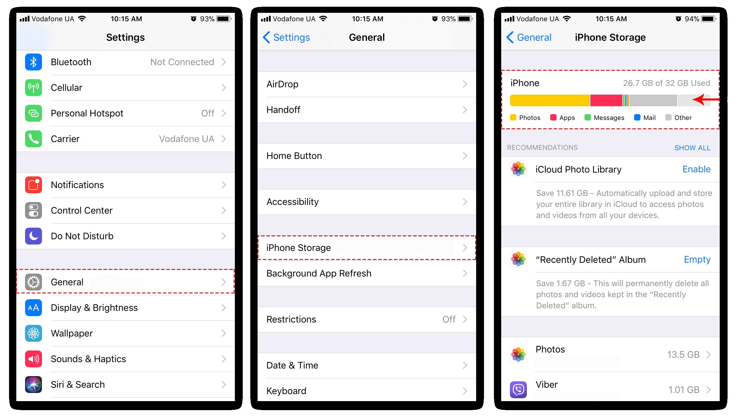 Step 2: Tap iPhone Storage and all the iPhone storage details will be found there.