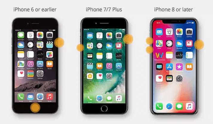 ● For iPhone 6 or earlier with the Home button: Press and hold the Home button and the Side/Top button at the same time and then release both when the Apple logo appears.