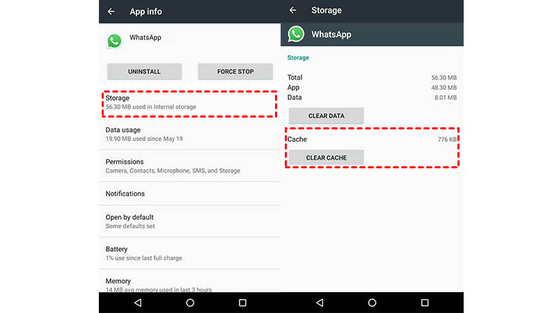 Step 2: Choose WhatsApp from the list of apps. Then, tap Storage > CLEAR CACHE.