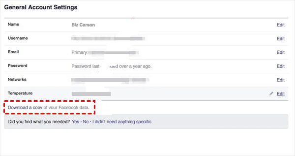 Step 2: Scroll down to the bottom of the page and locate the section labeled Download a copy of your Facebook data > Click the provided download link.