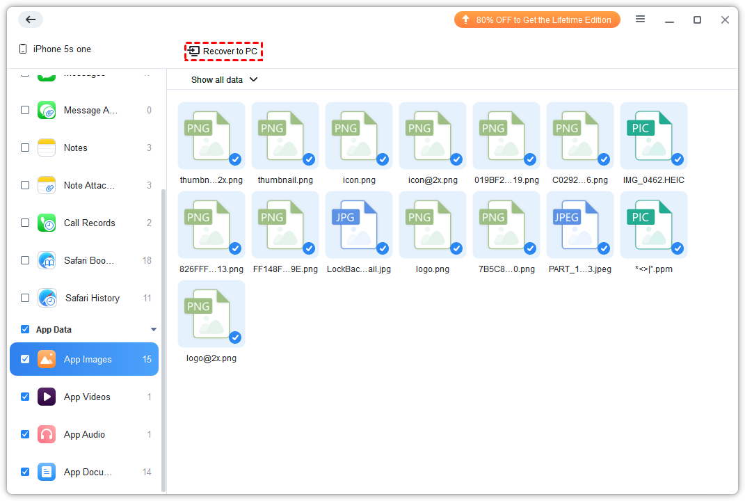 Step 3: After the scanning is complete, select the data you want to recover and click Recover to PC to start the recovery task.