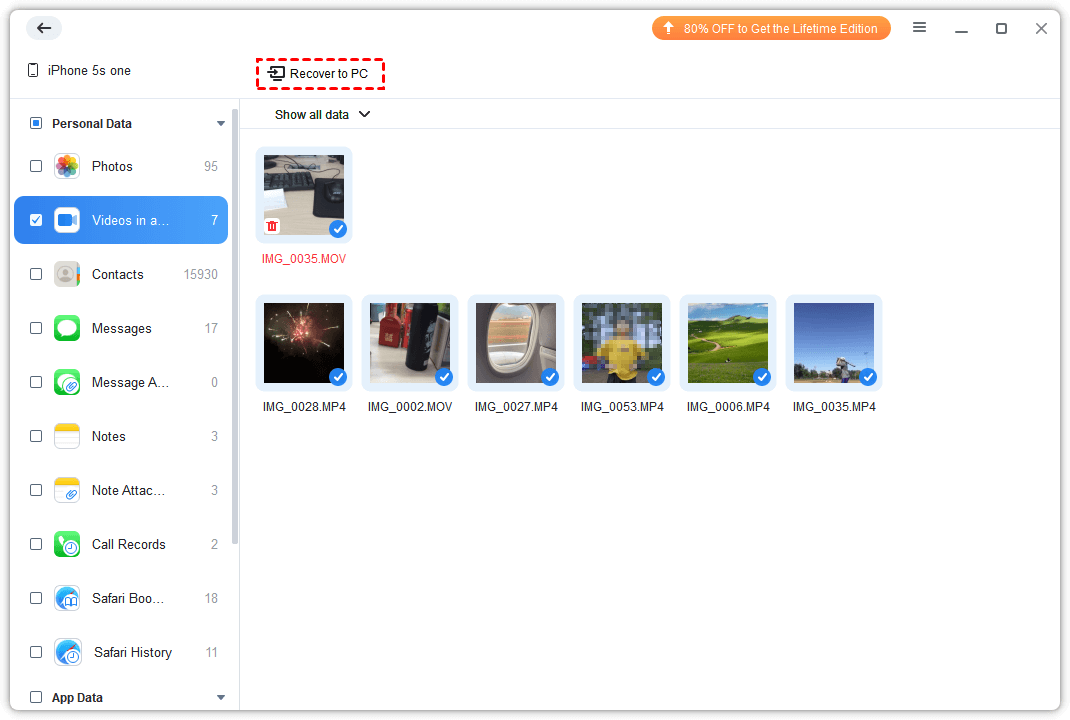 Step 4: Once the scanning process is complete, you will see the results displayed. Browse the recovered data and select the desired screen recordings and click the Recover to PC option.