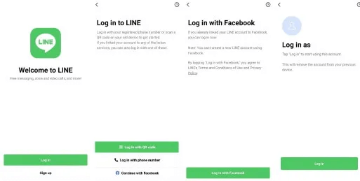 Step 1. Open LINE and click Log in > Choose to continue with your Facebook account.