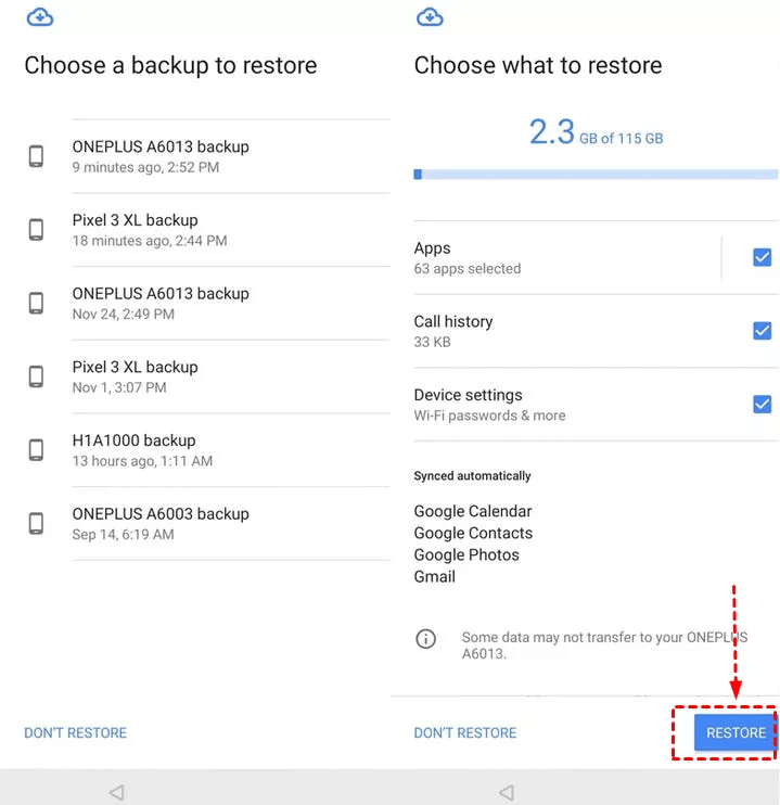 Step 2. When you go to the Choose a backup to restore page, select a backup from the list, and tap Restore.