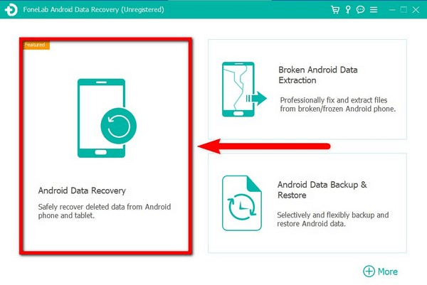 Step 2. Connect your broken Android phone to computer, and launch FoneLab for Android. Then, click Android Data Recovery box on the left side.