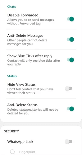 Step 2. Click on the anti-delete option available within the settings. It helps you see the deleted WhatsApp messages, group messages, statuses, and contact messages.