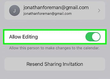 And that’s it. If you’d like to change permissions for the calendar, simply tap its name > Tap Allow Editing switch to on or off.