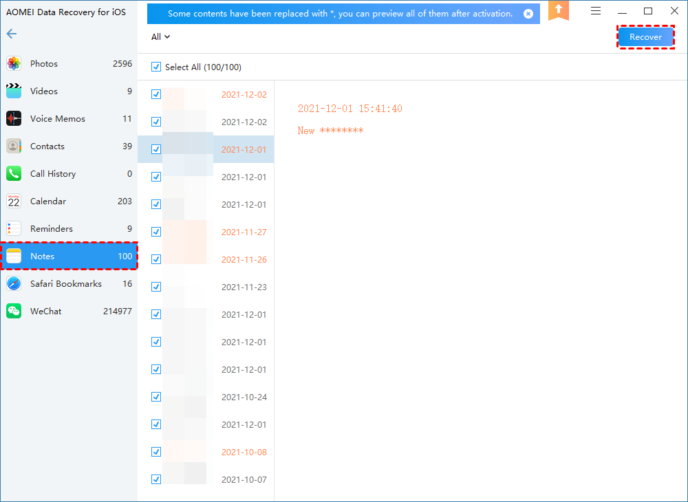 Data Preview & Selective Recovery: Before recovery, you can preview the disappeared notes and then selectively recover specific notes.