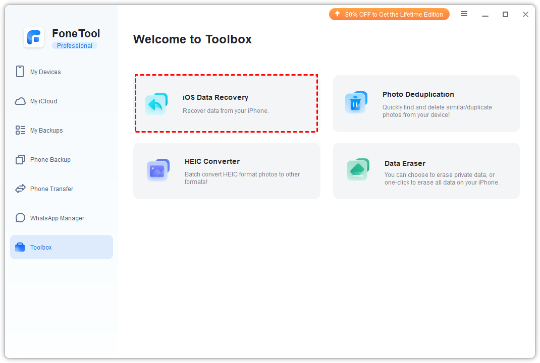 FoneTool now offers you an iOS Data Recovery service, enabling you to swiftly recover over 10 types of iPhone data, including recovering photos, videos, contacts, messages, and attachments, among others.
