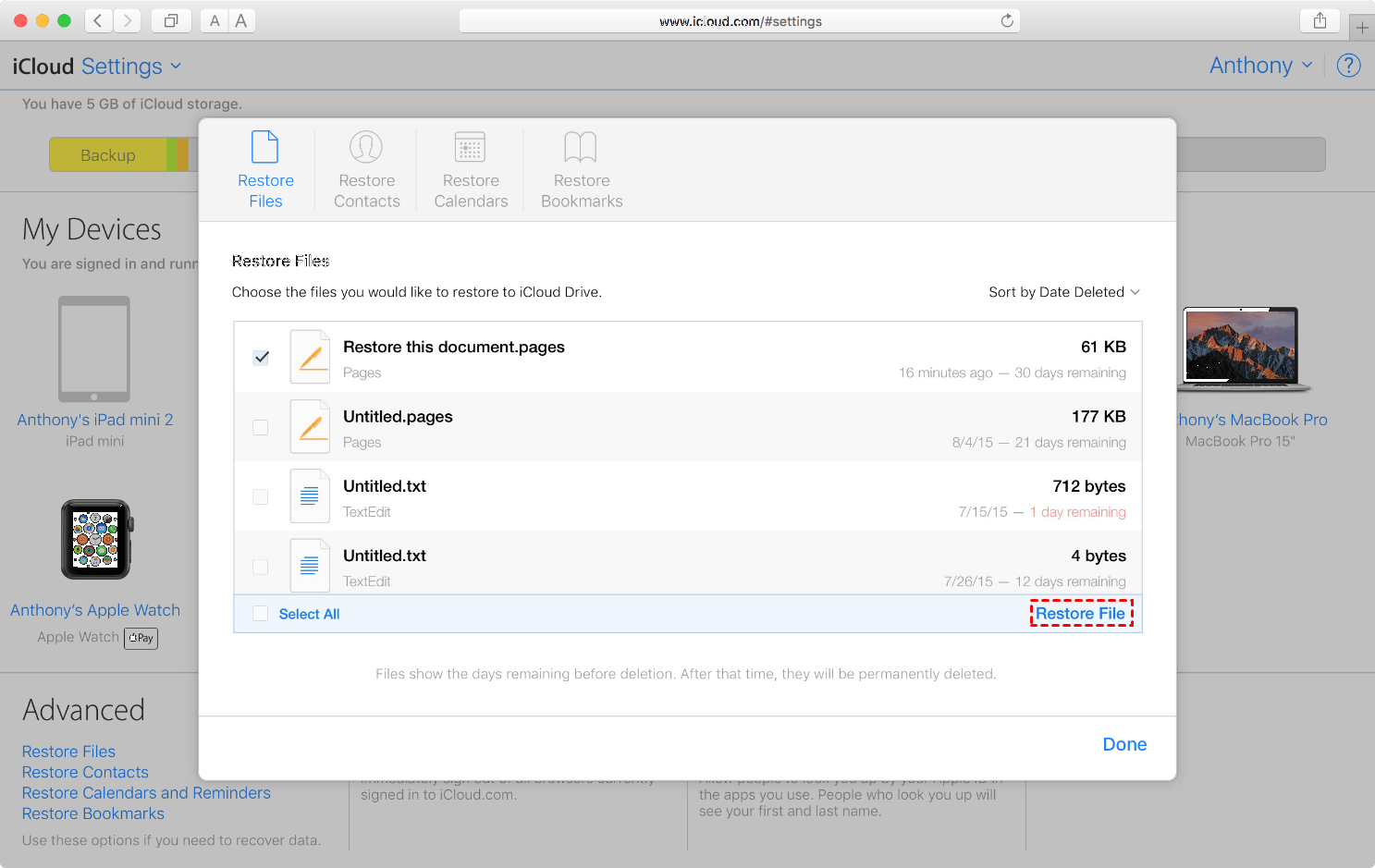 In addition, if you have synced your iPhone data to iCloud Drive when you accidentally delete your iPhone data, you can also go to iCloud.com within 30 days of the deletion to recover lost or deleted data on iPhone from documents and files.
