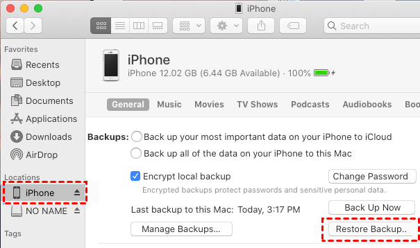 Maybe some iPhone users don't tend to choose iCloud backup because iCloud has a 5GB free storage limit. Likewise, you can use iTunes to backup iPhone data without iCloud, and you will be able to restore permanently deleted videos on iPhone from your computer. If you are using macOS Catalina, you can use Finder to implement the recovery process. Let's list two separate options on how to recover permanently deleted videos from iPhone for free.
