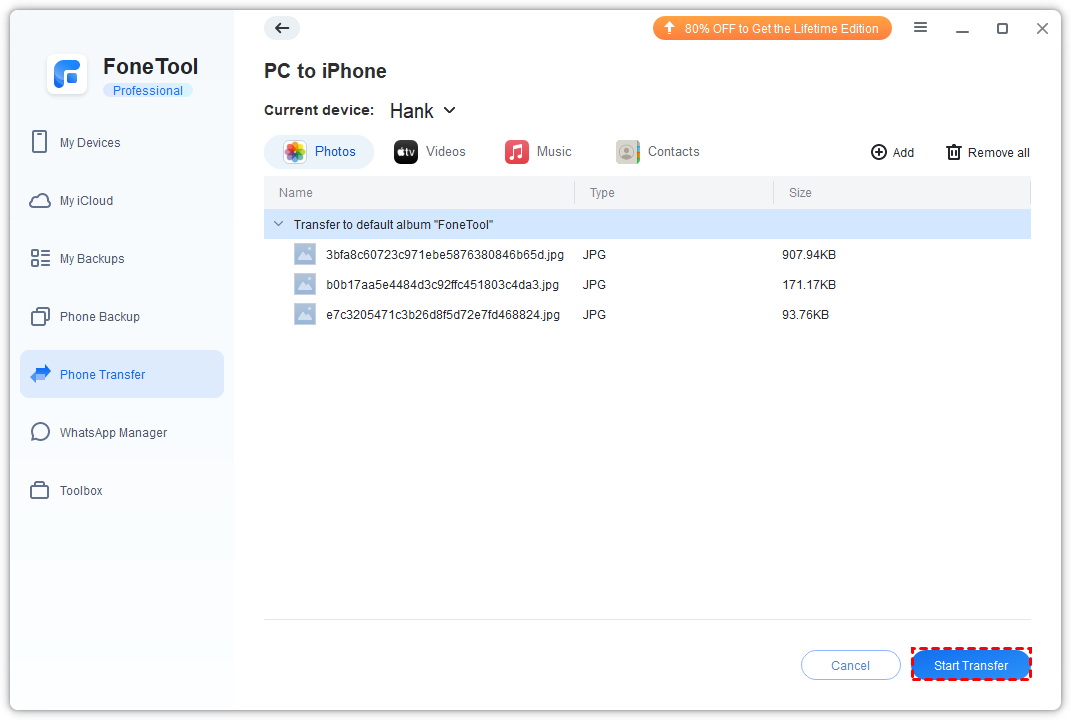 Step 4. Once the process is finished, you can go to Phone Transfer > Choose PC to iPhone to transfer your recovered data to your iPhone.