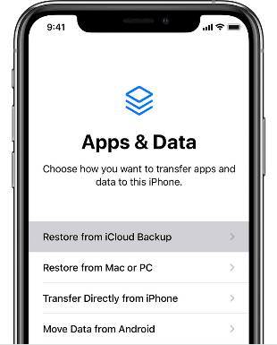 2. Set up iPhone until you access the data transfer screen > Choose Restore from iCloud Backup to make it.