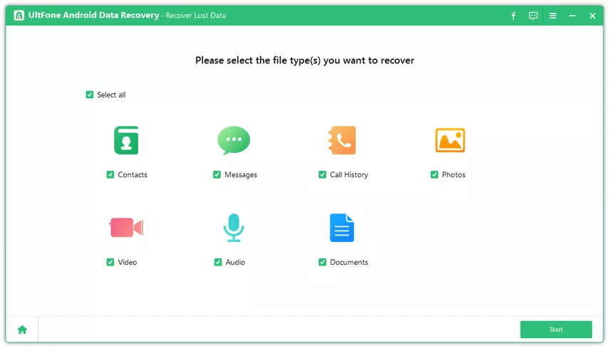 Step 1. Download and Install: Download and install UltFone Android Data Recovery on your computer, then launch the software.