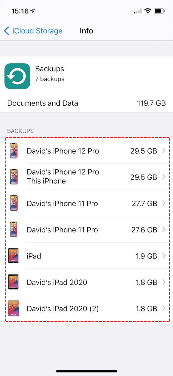 Step 1. Go to Settings > [your name] > iCloud > Manage Storage > Backups to check and make sure you have a backup version that matches your device and was saved before your text messages deleted.