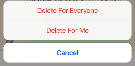 • Tap and hold the message and click Delete > Choose Delete For Everyone to confirm.