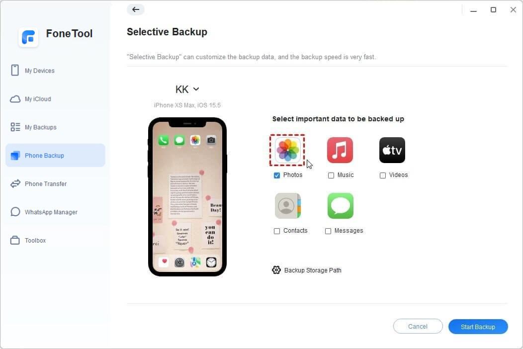 Step 2: Run FoneTool on your PC > Choose Phone Backup and then Selective Backup > Click Get Started.