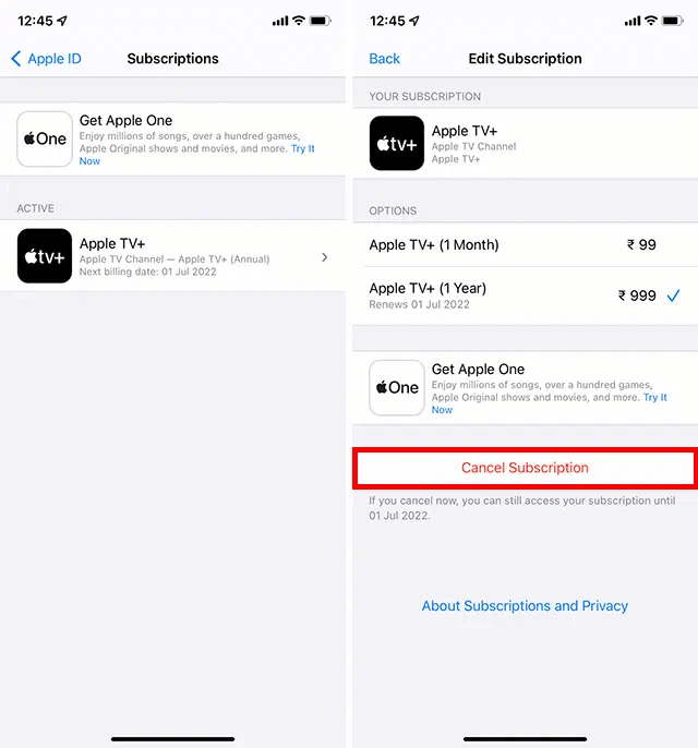 Step 2. Now, select the active subscription and tap Cancel Subscription to manually cancel it.
