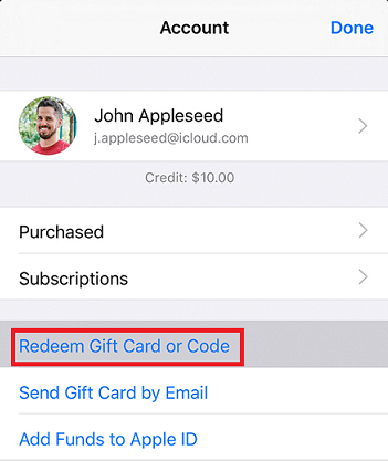 Step 2. Tap the Redeem Gift Card or Code button and enter the 16-digit code on the back of the card manually.