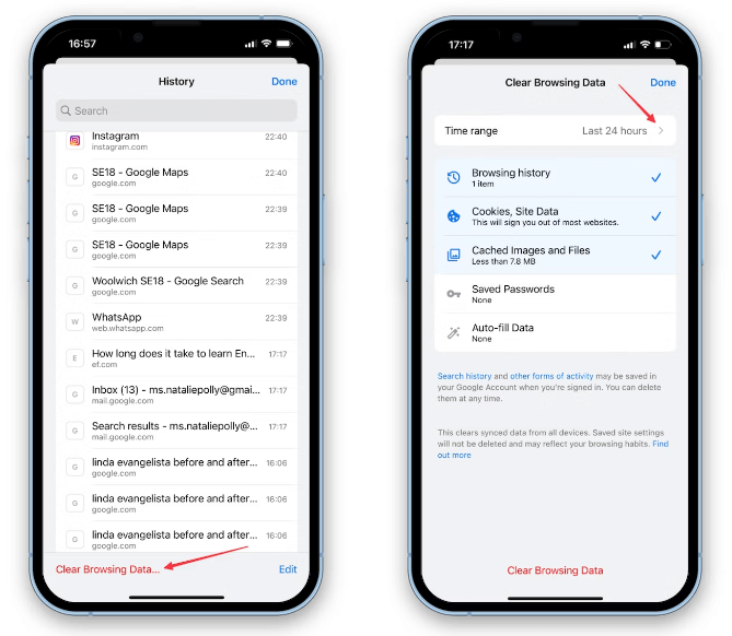 Step 3. According to your needs, clear all or selective browsing history on iPhone Google Chrome.