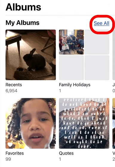 Step 2. Tap See All which is on the right at the top of all your albums.