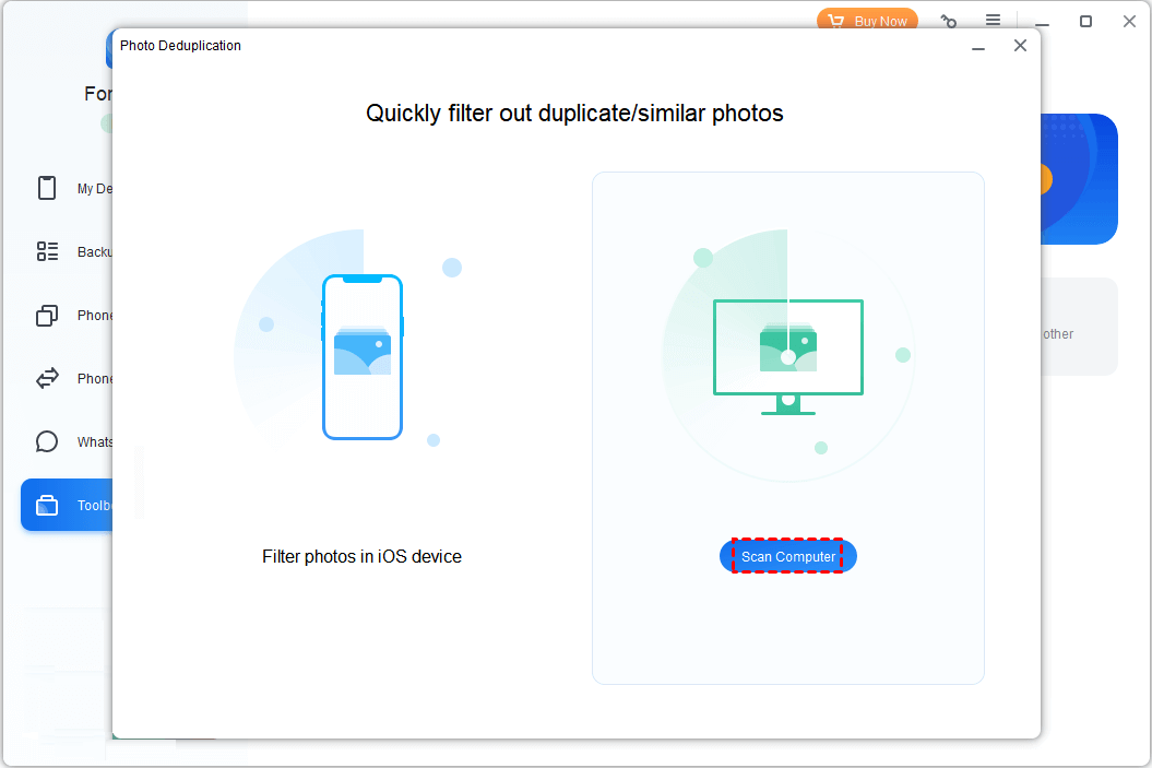 If you happen to own an iPhone, then FoneTool can be the best choice. It is one professional iPhone data management tool for Windows PC. Its Photo Deduplication feature can help you find duplicate images on your computer and iPhone.