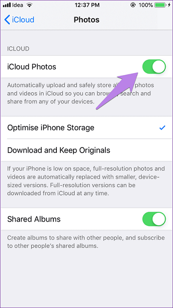 Please remember to disable the Shared Albums as well if you want to completely clear all the photos stored in the Photos app.