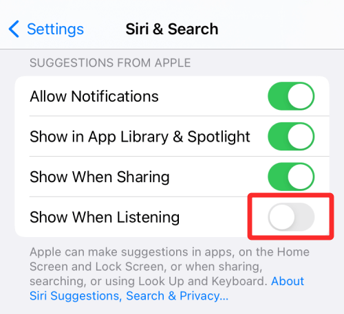 Besides, you can consider disabling suggestions from the music app you frequently use. Just select the app (Apple Music, Spotify or other music app) within the Siri & Search page > Then turn off the button next to the Suggestion Notifications option.