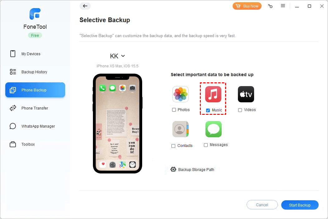 Step 2. Launch FoneTool > Go to Phone Backup > Choose Selective Backup.