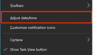 On Windows 10/11: Navigate to the lower-right corner of the screen, locate and right-click on the clock, then select Adjust date and time option.
