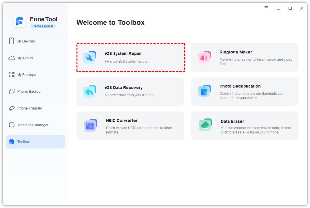 For more persistent system-related issues, FoneTool Repair provides a professional solution to fix underlying iOS problems that might be causing app malfunctions. With its user-friendly interface and comprehensive repair capabilities, it's an excellent choice for resolving various iOS system issues efficiently and safely.