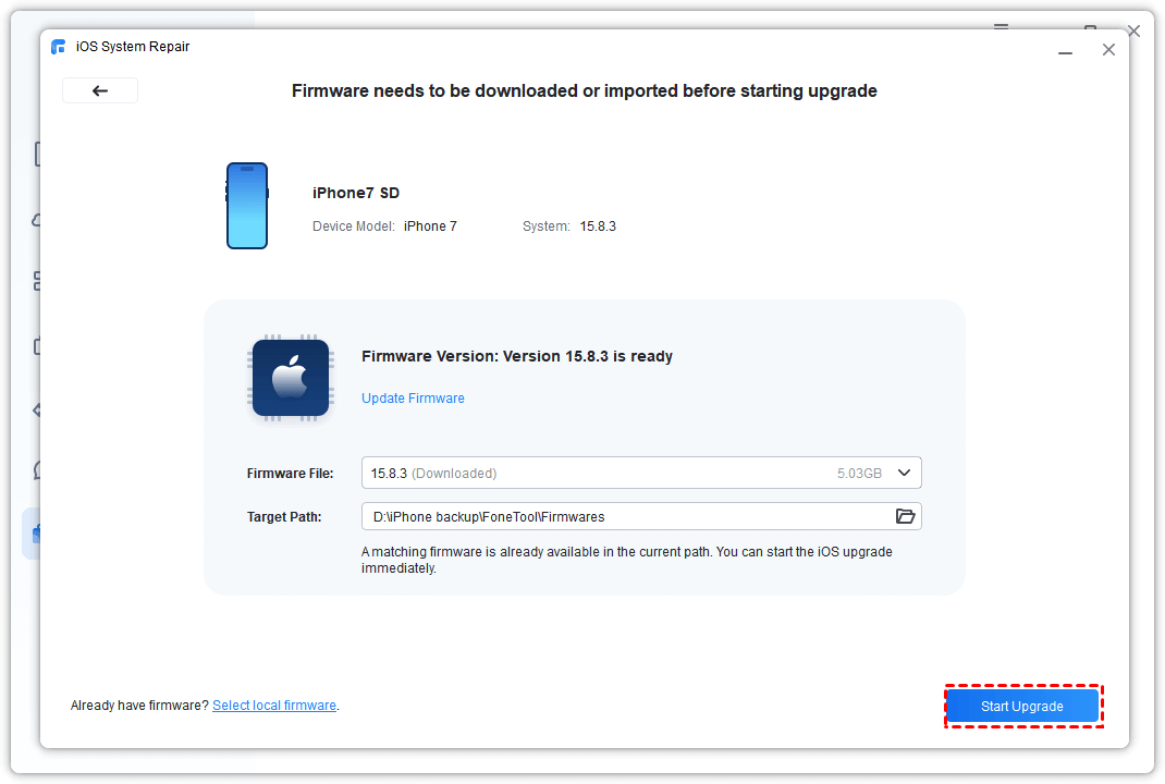 Step 4. Once the download process is finished, just click Start Upgrade to begin the task.