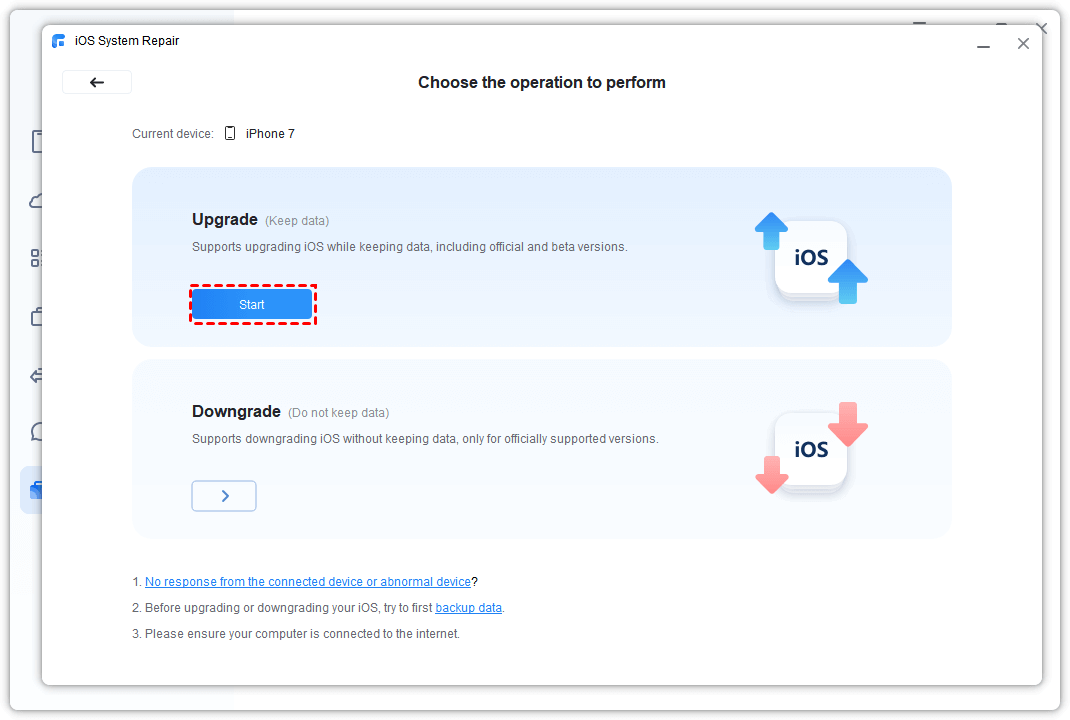 Step 2. Go to the Upgrade section > Click Start.
