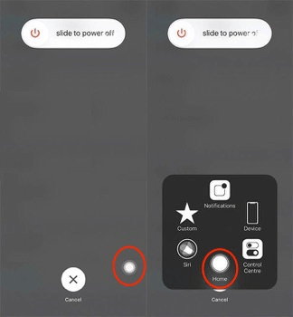 • Tap on the AssistiveTouch button > Press and hold the Home button from the options until the screen turns black and then white.