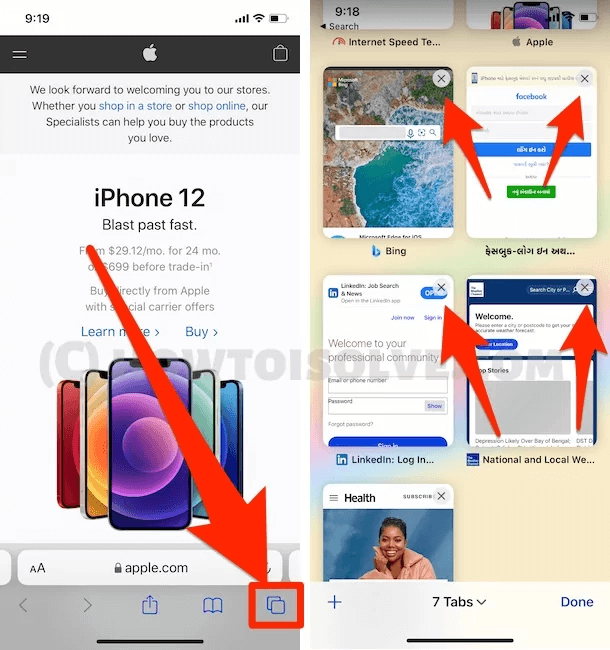 If you use Safari frequently, open too many tabs can consume significant RAM on your iPhone. Thus, it will be suggested to close tabs in Safari by following the steps below if you are looking for how to clear RAM on iPhone.