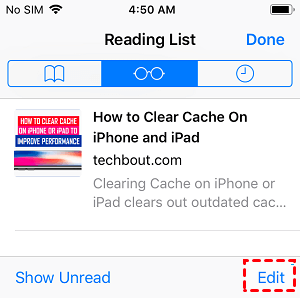 Step 3. Tap on the glasses icon to view your Reading List > And then, go to Edit in the bottom-right corner.