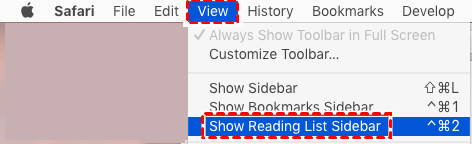 Step 2. When a new pane will appears, select the Show Reading List Sidebar option.