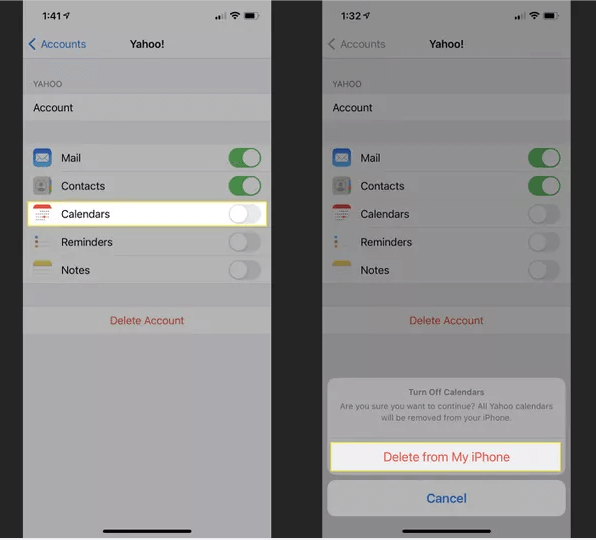 - It is important to note that the process described above only removes the calendars from your iPhone. The calendars themselves will still exist in your online account. Deleting them from your iPhone will not affect their presence in your actual online account.