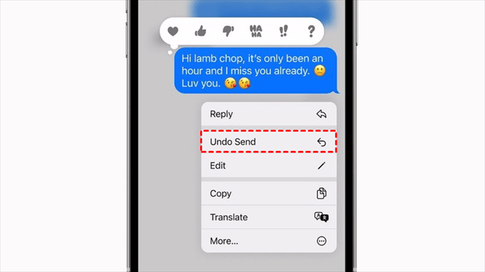 By long-pressing the message, a menu will appear, offering various options. Look for the "Undo Send" option within the menu and tap on it.