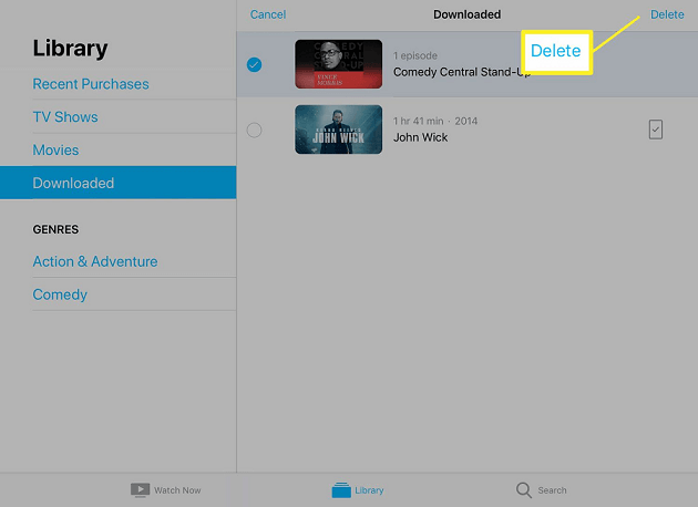 Step 2. Tap Edit in the upper-right corner > Tap the circle next to the movies or TV episodes you want to delete > Tap Delete to confirm your operation.