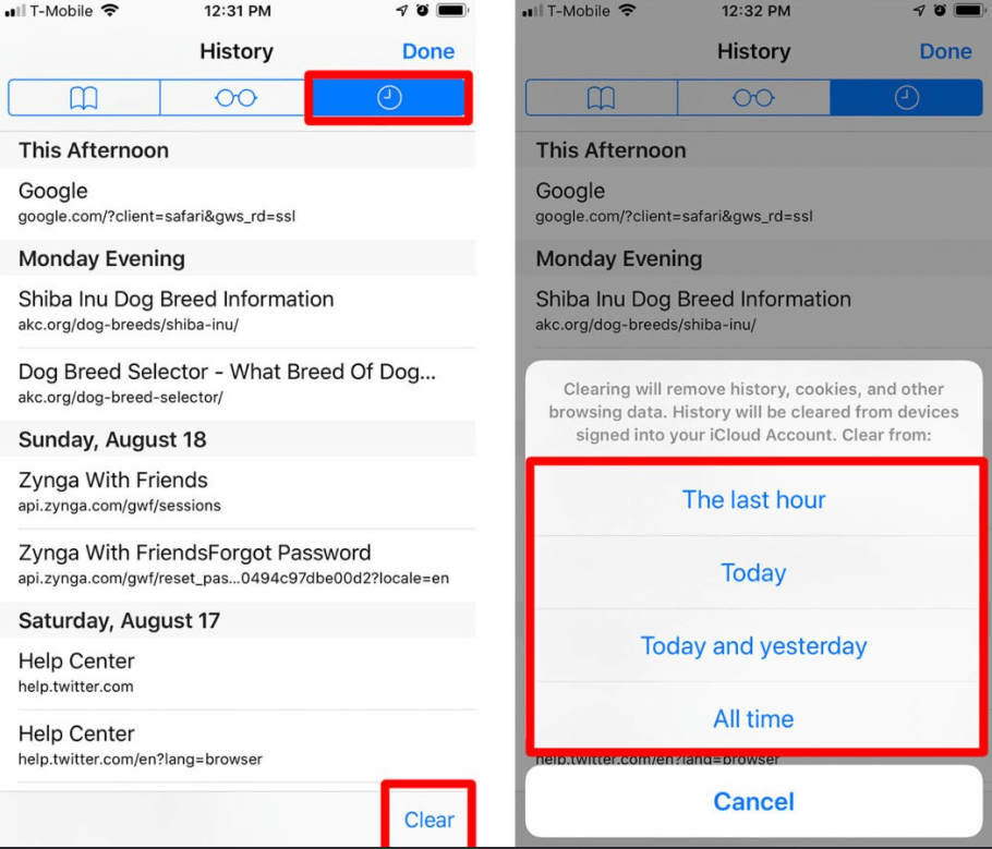 - Clearing will remove history, cookies, and other browsing data. History will be cleared from devices signed into your iCloud account.
