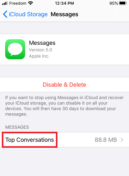 Step 2. Under Apps Using iCloud, tap Messages > Top Conversations.