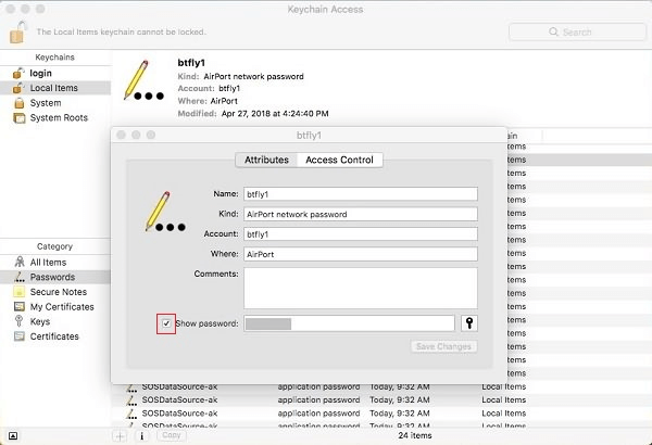 • In the Keychain Access, you can find the specific network that you want to view and its password.
