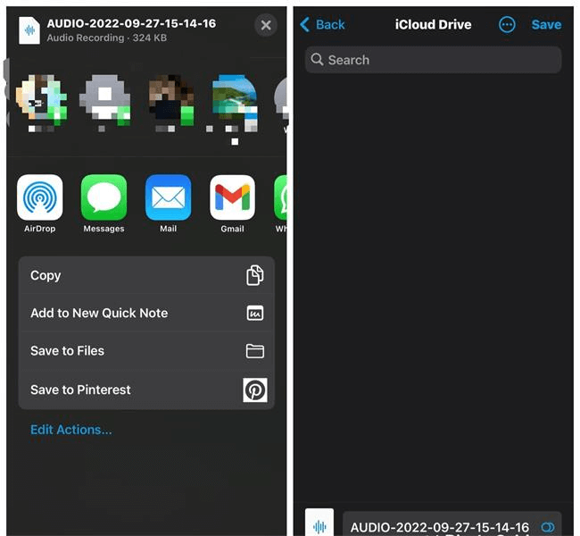 Step 3. Choose a location to save the WhatsApp audio > Then hit Save at the top right.