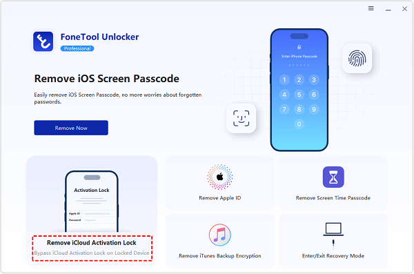 ► Remove Apple ID/Activation Lock: If you encounter an activation lock problem, FoneTool Unlocker can help you remove Activation Lock and Apple ID without the previous owner's password.